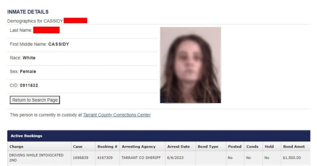 The Tarrant County inmate roster lists current jail bookings and custodial status. Each entry usually shows:
